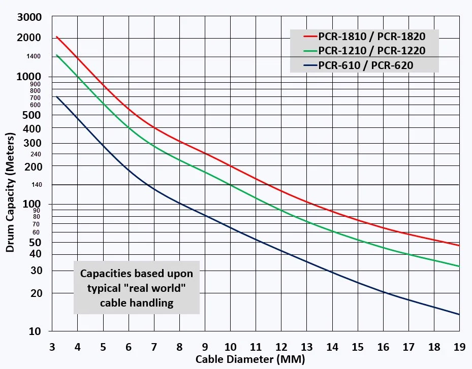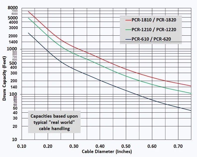 "Large" | PCR-1810 | PCR-1820 | 1800 ft. of 0.25 in. dia. (640 meters of 6mm dia.) |